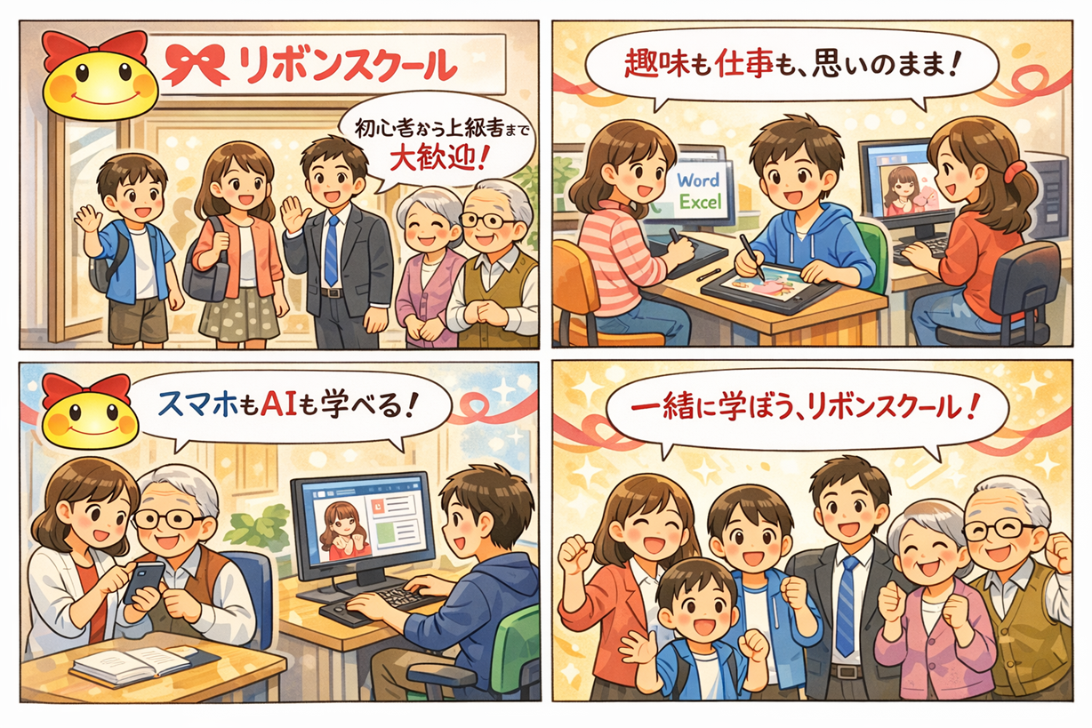 - 生成AI・DX・ホームページ制作・MOS資格・キッズまで一か所で学べる総合スクール。