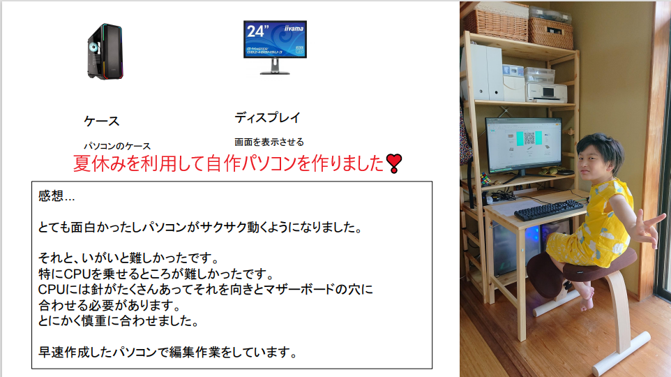 夏休みを利用して自作パソコンに挑戦した小学生の悠世君