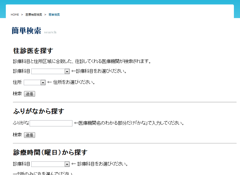 データを検索することにより各病院・各医院の診療日・診察時間等を閲覧できます。